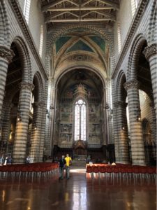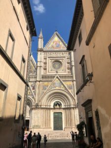 Ci vollero tre secoli per terminare il Duomo, 20 artisti solo per la facciata. Il rosone, le strombature dei portali, i basso rilievi, la loggia, le edicole, i mosaici, le statue di bronzo, la Cappella dove è custodito il corporale e tutte queste cose sono solo un accenno alla bellezza armoniosa ed equilibrata di questo capolavoro di architettura gotica.
