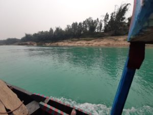 L’area in cui ci troviamo è collinosa, ricoperta da una densa vegetazione subtropicale interrotta da tea-garden, cascate e piccoli fiumi poco profondi ma ugualmente navigabili con piccole imbarcazioni di legno. Il tratto da noi percorso è un canale di circa 12 km e si chiama Lalakhal, una delle mete turistiche più frequentate della zona. Il percorso in barca è molto bello, rilassante; si passa fra alte colline verdissime; il silenzio purtroppo rovinato dal motore di sottofondo della barca. Ciò che attrae maggiormente i turisti in questa zona è la bellezza dell’acqua del canale caratterizzata da un turchese introvabile in nessun altro fiume in Bangladesh e dovuto alla presenza di minerali nell’acqua.