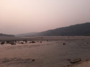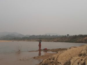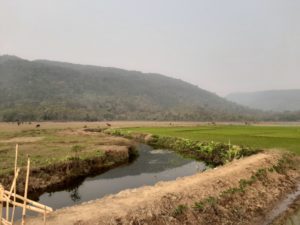 Al termine del dodicesimo chilometro ci fanno scendere; se vogliamo possiamo proseguire un po’ a piedi lungo il fiume per raggiungere il punto zero, oltre il quale poi inizia l’India. Ci dicono, molto eccitati, che le enormi colline verdi che vediamo fanno già parte della catena delle colline di Meghalaya. Non capisco l’eccitazione, ma la vista è veramente molto bella. Sarà che loro sono abituati a grandi distese di acqua e di piantagioni di riso, ma a me ricordano le colline del prosecco della mia regione. Tutto è relativo; per me sono colline, per loro sono già delle montagne. Paghiamo il nostro traghettatore, pranziamo in un piccolo ristorante di cucina locale con vista sul fiume e risaliamo in macchina che nel frattempo ci ha raggiunti percorrendo la strada parallela al fiume.