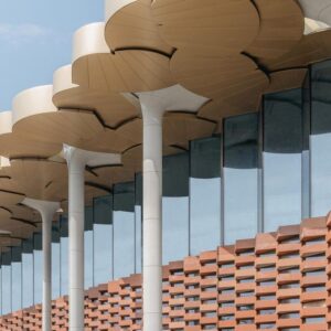 La Biblioteca di Pechino, nuovo polo culturale della città. Un avveniristico ecosistema architettonico che unisce natura e sostenibilità.