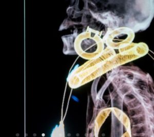 Ieri ho fatto un giro nel sito del Museo Egizio di Torino, sezione Archeologia invisibile. “Invisibile” si fa per dire dato che con le nuove fanta-tecnologie, adesso puoi spiare dentro un sarcofago chiuso da millenni che tanto pare la cosa più normale di sempre (come passa il tempo!). Si chiama archeometria, ed è una roba che ci stanno di mezzo gli elettroni insieme ai raggi X, XRF, X-Ray fluorescence, e altre invenzioni lunari tipo la spettrometria Raman. Ma il risultato è eccellentissimo, giuro! Concludendo, la signora morta e sigillata nell’urna sopra citata, è stata conservata con tutte le sue gioie: oro massiccio e pietre da capogiro. La foto qui sotto, docet. Per chi non ci credesse, quelli di Torino fanno fare anche un giro virtuale nel Museo. Usare internet per credere.
