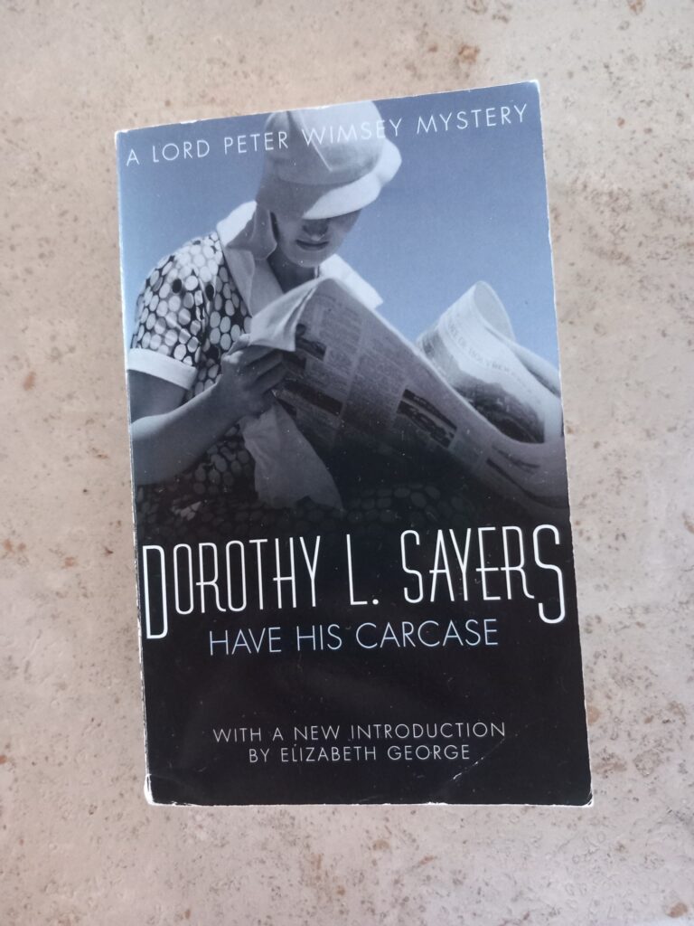Have His Carcase is the first book by Dorothy L. Sayers that I read many years ago and the one that made me become a fan of this author. First published in 1932, it’s the second book featuring mystery author Harriet Vane (we first met her in Strong Poisonwhere she was accused of murdering her former lover) as she is the one who, during an holiday hiking on the South West coast of England, finds the murdered body of a man on the beach. No one else was around and many of the proof, along with the body, havebeen swept away from the sea. Luckily, Lord Peter Wimsey doesn’t waste time in coming to help and, together, they try to figure out what happened.