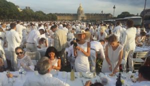 Nel 1988 a Parigi François Pasquier invita alcuni amici per un picnic nel bosco di Boulogne e chiede loro di vestirsi di bianco. Da allora una volta l’anno un enorme pic nic viene organizzato, tutti in bianco, e il luogo viene comunicato all’ultimo momento.  Bisogna portare il proprio cibo, posate, piatti e tavoli. Tovaglie rigorosamente bianche e anche le sedie.