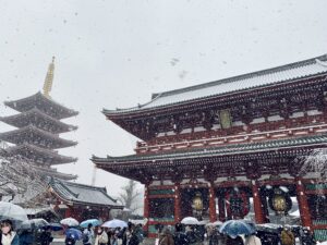 A Tokyo non capitano spesso grandi nevicate, ma questo 2022 inizia in grande stile, regalando una copiosa nevicata nella prima settimana dell’anno, quando ancora templi e santuari sono vestiti a festa per accogliere i visitatori che fanno hatsumode, la prima visita e preghiera dell’anno.