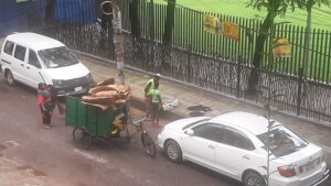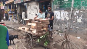 Non è il caso di spostarsi a piedi, per ragioni che forse vi potete immaginare, meglio la macchina o il rickshaw, che viaggia ad una velocità adatta a chi come me è in cerca di foto ricordo. Se non hai il garage, la mucca la posteggi sul marciapiede, fuori del portone; tra capre, mucche, chi ti vende l’erba, il mangime, la stuoia per farla sdraiare una volta sacrificata, la fetta di tronco da usare come tagliere, i coltelli affilati, e l’immancabile Savlon, il disinfettante per ripulire il tutto dal forte profumo di limone, per strada c’è un via vai vivace, rumoroso e puzzolente. E’ festa, al diavolo il Covid!