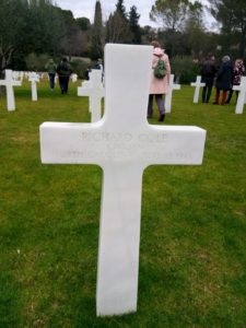 Secondo la legge americana il bambino nella pancia della mamma é della nazionalità di quest’ultima, quando nasce può avere la nazionalità del padre. Quindi é riconosciuto bambino americano alla nascita. La guerra finisce, siamo già nel 1946 quando Richard nasce e muore, sicuramente é stato seppellito altrove. Nel 1950 viene creato questo cimitero militare e i genitori decidono di farvi trasferire la tomba del figlio. La coppia poi si trasferisce in America e sappiamo che sono stati sposati fino alla fine e che ora sono entrambi deceduti. Sappiamo anche della nascita di un secondo figlio che secondo gli archivi dovrebbe essere ancora in vita.
