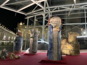 I ceramisti sono stati gli allievi e i professori dell’istituto d’arte “F. A. Grue”, che nel decennio 1965-1975, seppero creare un complesso scultoreo di 54 statue sul tema della Natività. Le opere contengono anche espliciti riferimenti ai grandi fatti che hanno segnato la storia umana. E’ per questo che nell’allestimento selezionato per Piazza San Pietro c’è anche un insolito angelo cosmonauta per ricordare l’allunaggio del 1969. Trovo che questo presepe sia rivoluzionario, innovativo nello sforzo creativo, ma anche fortemente radicato nella tradizione, nello slancio genuino verso l’essenza delle cose. Più che mai, in questo 2020 surreale e grottesco, la riscoperta dei veri valori passa attraverso la semplicità che è anche grandezza.