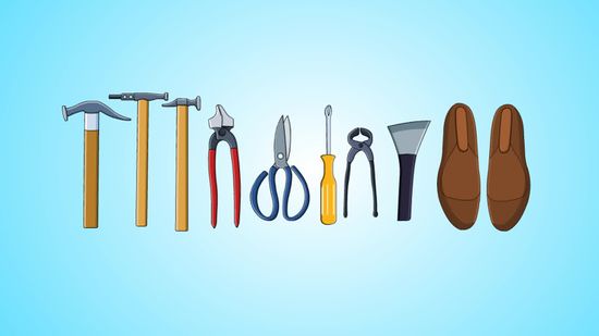 - Attrezzi e filo resistente, adatto a questo lavoro. Alla fine sarà visibile perciò col colore adatto alla calzatura. Serviranno anche dei taglierini appositi, come un coltellino di precisione e un ‘feather’. Anche le forbici saranno utili. Un punteruolo da cucito o simili. Infine della colla forte per cuoio.