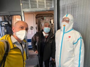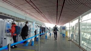 Dal finestrino dell’aeroplano intravedo un’intera squadra di omini in tuta bianca. Si muovono come in un film di fantascienza. L’accoglienza ricorda Wuhan, la città dove è scoppiata la pandemia.