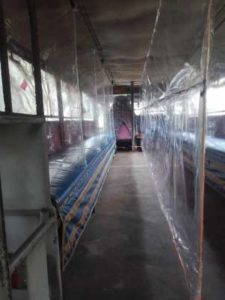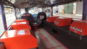 The partitions equipped with ropes and plastic typically used for greenhouse that serve as protection for their passengers. While some drivers used different kinds of plastics for their jeepneys, others made use of materials readily available at home like with the use of his bedroom curtains. Another clever driver placed several fare collection boxes inside his vehicle, where passengers must place their payments instead of handing it over to their seatmates.