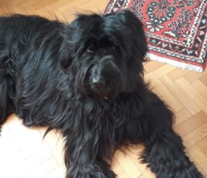 Intanto mi è toccato andare a fare la spesa al supermercato più vicino a casa. Ho fatto una spesa che includerà parecchi giorni della settimana prossima. Sono stata invogliata nel prendere una pastiera napoletana preparata da un forno. Morbida e profumata. Ho quindi pensato che potesse essere un buon dono goloso da portare a casa per il tavolo pasquale. E’ festa e dobbiamo coccolarci per quel che si può. Appena sono entrata in casa, con l’aiuto di mio figlio, ho sistemato tutte le cose comprate. La pastiera doveva esser posta in sala da pranzo, ma in alto e sul buffet, mentre Ale l’ha appoggiata sul carrello- vivande, tanto basso e tanto a portata di muso della nostra Ebony. In un attimo Beba si è mangiata la pastiera fresca, fresca di stamattina e senza pensarci tanto.
