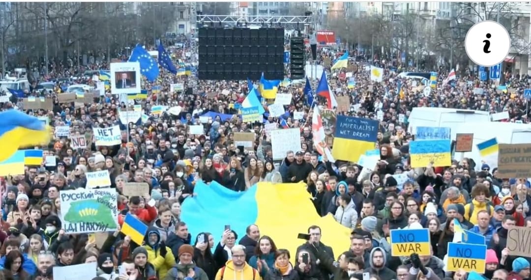 “E’ indispensabile fermare Putin “, dice il premier Fiala con migliaia di persone riunite in piazza San Venceslao a Praga per la manifestazione di pace a sostegno del popolo ucraino di fronte all’invasione russa.