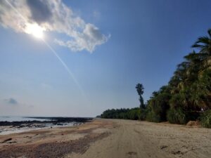 Siamo partiti con l’autobus da Dhaka alle 8 di sera, siamo arrivati a Cox’s Bazar, sulla costa alle 6, alle sette partiva il traghetto e dopo cinque ore e mezza di navigazione eravamo già sull’isola; per noi, che viviamo a Dhaka, rinchiusi tra quattro mura di cemento sette giorni su sette, Saint Martin è un piccolo paradiso, non equiparabile certo alle Maldive, soprattutto per servizi e strutture, ma per noi ‘Dhakaites’ che non riusciamo mai a vedere un tramonto, basta e avanza.