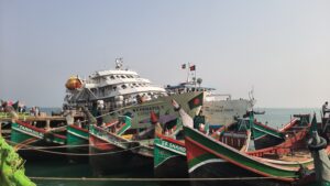 Dopo che svariati controlli su Internet mi avevano convinta che il nuovo traghetto (che vedete nella foto) era veramente ‘decente’, e dopo che uno studente-imprenditore di mio marito ci aveva mandato le foto del nuovo resort che aveva costruito sull’isola invitandoci ad andare, siamo partiti.