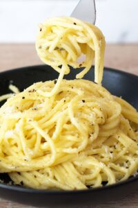 Cuocete gli spaghetti al dente. In una casseruola alta e larga versate l’olio, aggiungendo pepe e pecorino, fino a formare una crema che sarà il condimento dei vostri spaghetti romani.