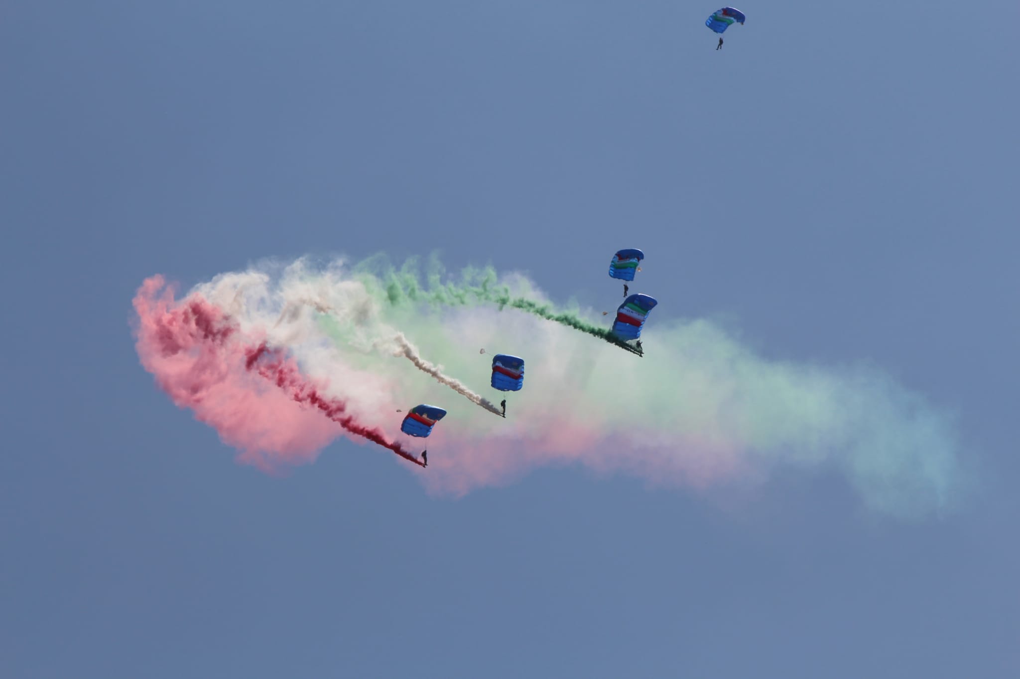 Ora gli sguardi sono rivolti al cielo, oggi limpido, per lo spettacolo più bello: i paracadutisti che solitamente chiudono la parata lanciandosi in aria e atterrando in prossimità delle tribune d’onore.
