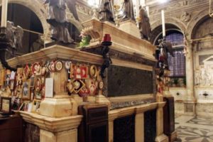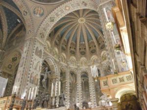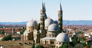 Oggi, invece, vi parlerò di quella più spirituale, Padova religiosa e della Basilica di Sant’Antonio, chiesa esotica con guglie simili a un minareto e cupola bizantina, conosciuta anche come “Basilica del Santo”. Fu iniziata nel 1232 per ospitare le spoglie di Sant’Antonio da Padova (lui in realtà portoghese) che abbracciò il modello di San Francesco e che predicò sino alla sua morte. Sebbene uomo semplice che rifiutò tutte le ricchezze terrene, i padovani costruirono una delle chiese più ricche della cristianità come suo santuario. Il profilo esotico riflette l’influenza dell’architettura bizantina, la cupola centrale a forma di cono è attorniata da sette altre cupole che si innalzano sopra una facciata che unisce il gotico (sarà contenta Matilde) ed il romanico.