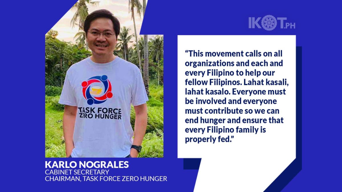 The Task Force Zero Hunger (TFZH), chaired by Cabinet Secretary Karlo Nograles alongside private sectors, non-government organizations, and civil society groups, launched the multi-sectoral movement–Pilipinas Kontra Gutom (PKG), to fight hunger in the Philippines.