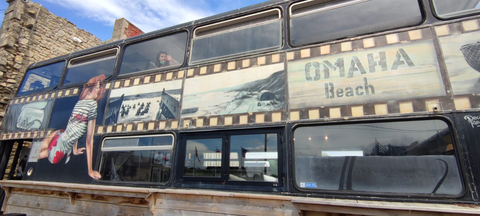 Ciao a tutti! Questa settimana voglio presentarvi un ristorante particolare. sono in Normandia, lungo la costa dove il 6 giugno del 1944 sbarcarono gli alleati. Sulla spiaggia rimasta famosa col nome OMAHA BEACH. Un classico bus inglese a due piani trasformato in ristorante. Originale, intimo e caloroso…….buon appetito !
