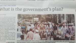Saranno stati i raduni per i festeggiamenti dell’indipendenza, i Giochi Asiatici che si stavano svolgendo in questi giorni, le partite di cricket, le sommosse anti-Modi del partito fondamentalista Hefajot che dal suo arrive in citta’ e per alcuni giorni successivi hanno causato oltre a cinque vittime (ufficiali) anche danni in varie parti di Dhaka e in alcuni distretti fuori Dhaka; saranno stati i bus stracolmi o la variante sud Africana riscontrata nell’80% dei nuovi casi o semplicemento il fatto che ci eravamo dimenticati della pandemia in corso, ebbene nel giro di 15 giorni i contagi sono passati da poco meno di 500 a quasi 8000 giornalieri, una cifra che non era stata mai raggiunta neanche l’anno scorso. E’ vero, piu’ della meta’ dei contagi sono qui a Dhaka ma a differenza della prima ondata questa volta sembra che il contagio si sia diramato anche nei distretti fuori Dhaka.