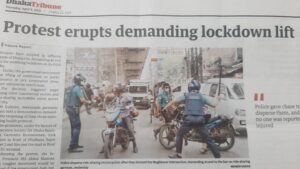 Nulla e’ stato fatto in questi mesi per aumentare i posti letto in ospedale, il numero di infermieri e dottori, la fornitura di ossigeno, la maggior parte degli ospedali non ha nemmeno il sistema di ossigenazione centralizzato. Nulla e’ stato fatto per aumentare il tracciamento dell’infezione. Chi ha i sintomi, va a farsi il tampone, mettendosi in fila insieme a tutti gli altri e magari dovendo tornare il giorno dopo perche’ i tamponi sono finiti. Chi pero’ e’disposto a pagare l’equivalente di 40/50 Euro puo’ farselo fare a casa chiamando la clinica privata. Non erano passate nemmeno 24 ore dalla dichiarazione, che i piccoli commercianti in un paio di zone di Dhaka sono scesi in strada per protestare e li sono rimasti per circa 3 giorni fino a quando il governo ha ceduto e ha dovuto dichiarare che i negozi potevano rimanere aperti dalle 10 alle 18.00. Se i negozi sono aperti perche’ non anche gli uffici privati, e perche’ non gli autobus che servono a trasportare i lavoratori e perche’ non i piccoli ristoranti sulla strada che li devono sfamare? Insomma il primo tentativo di lockdown e’ andato male. Bisogna riprovarci. Ecco dunque di ieri la dichiarazione di un secondo lockdown: a partire dal 14 aprile e per una settimana vera’ imposto un lockdown ‘serio’, anche se gli esperti insistono per una chiusura di almeno due settimane. Questa volta tutte le attivita’ commerciali, tranne quelle essenziali, tutti i trasporti, tranne le ambulanze, dovranno chiudere. Si ‘incoraggiano’ inoltre le persone a rimanere in casa.