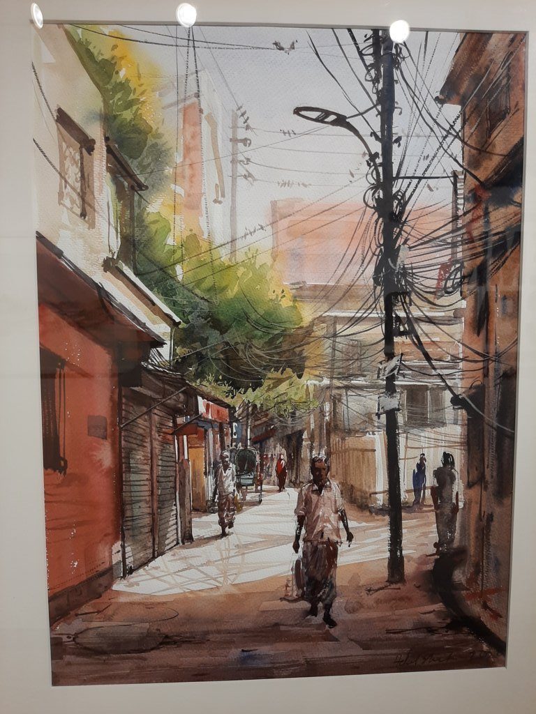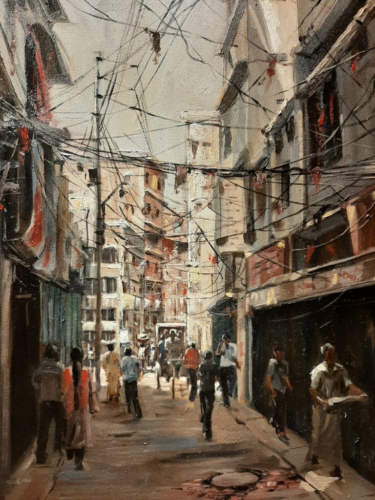 Il suo occhio particolare per i dettagli e il sapiente miscuglio di colori, animano queste scene di vita normale della vecchia Dhaka tanto da farle sembrare vere.