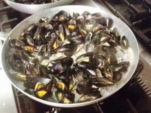 Lessare le patate. Una volta pronte, farle cuocere con uno spicchio di aglio, olio, e unire le cozze. Tagliate la provola affumicata ed unitela a tutti gli ingredienti. Una volta lessata la pasta bene al dente, amalgamatela con tutti gli ingredienti in una zuppiera e spolverate un po’ di prezzemolo tritato. Vedrete cosa assaggerete.