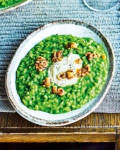 Cosa serve: riso tipo Carnaroli, spinaci, mascarpone,mela, cipolla, olio, burro, vino bianco, brodo, sale e pepe.