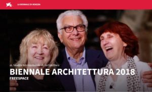 Yvonne Farrell e Shelley McNamara sono le curatrici di questa 16^ Mostra Internazionale di Architettura, che si svolge dal 26 maggio al 25 novembre 2018 ai Giardini e all’Arsenale e in vari luoghi di Venezia. Il titolo scelto è Freespace, che rappresenta la generosità e il senso di umanità che l’architettura colloca al centro della propria agenda, concentrando l’attenzione sulla qualità stessa dello spazio.