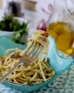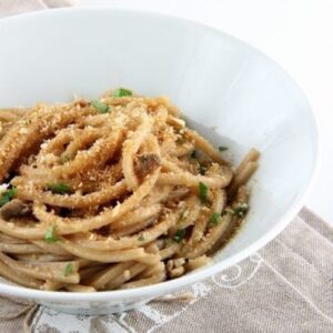 Ecco una nuova ricetta, cari amici: la pasta con alici e pangrattato. Nasce come ricetta da recupero per ultilizzare il pane avanzato, impreziosendolo con il sapore forte delle alici e l’aroma dell’aglio e prezzemolo.