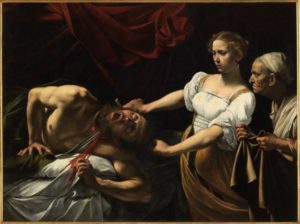 La scena biblica rappresentata con la forma di chiaro-scuro tipica di Caravaggio ….Giuditta che da sola incarna tutta la forza e resistenza del popolo ebreo, il generale che alza lo sguardo verso la donna che gli sta tagliando la testa…e la donna anziana…che volto, le rughe e il gozzo…..niente da dire…non può lasciare indifferente. Certo, una versione molto diversa da quella che si può vedere a Palazzo Barberini a Roma, ma nei testi di 400 anni gli esperti hanno trovato traccia anche dell’altro quadro.