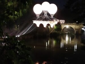 Le notti magiche di Roma non sono finite con la vittoria della squadra di calcio italiana agli Europei 2021. Sul Lungotevere, questa sera, si assiste ad una magia lunga 18 metri, sospesa sul fiume e illuminata da grandi palloni aerostatici: un ponte sospeso tra i tanti ponti sovrastanti il Tevere, un ponte sognato da Michelangelo ma mai realizzato in passato. Oggi, il particolare progetto nasce ad opera di un artista francese, Olivier Grossetete, che con la sua installazione sospesa rende questo sogno visibile dal tratto di Lungotevere che precede l’Isola Tiberina.