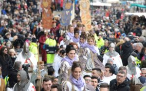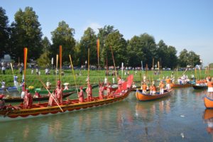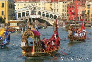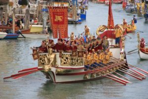 (Cit.) La Regata Storica è l’appuntamento principale del calendario annuo di gare di Voga alla Veneta, disciplina unica al mondo praticata da millenni nella laguna di Venezia. È oggi resa ancora più spettacolare dal celebre corteo storico che precede le gare: una sfilata di decine e decine di imbarcazioni tipiche cinquecentesche, multicolori e con gondolieri in costume, che trasportano il doge, la dogaressa e tutte le più alte cariche della Magistratura veneziana, in una fedele ricostruzione del passato glorioso di una delle Repubbliche Marinare più potenti e influenti del Mediterraneo. Moltissimi i figuranti in costume, appunto, dal Doge e Dogaressa, Nobili, mestieranti e le “Marie” del Carnevale di Venezia ufficialmente in carica.
