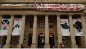 Sono quasi due mesi che a Parigi, il teatro dell’Odeon, uno dei 6 teatri statali di Francia, è occupato. 40/50 persone si alternano per occuparlo giorno e notte. Ci sono stata anch’io, ci ho dormito due notti e ho potuto constatare di persona in cosa consiste questa occupazione. Ero curiosa di sapere come si può procedere con una tale operazione mediatica in piena crisi sanitaria. Sono stata rassicurata subito sulle condizioni sanitarie, all’ingresso mi hanno chiesto un test covid di meno di 24 ore e per chi é già all’interno ogni venerdì procedono con il test covid per tutti. Sono fieri del fatto che in due mesi di occupazione non solo non hanno avuto neanche un caso di Covid, ma risultano tutti negativi.