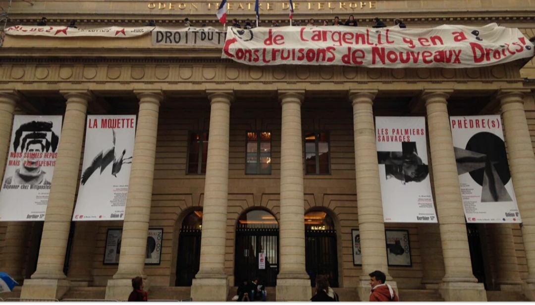 Sono quasi due mesi che a Parigi, il teatro dell’Odeon, uno dei 6 teatri statali di Francia, è occupato. 40/50 persone si alternano per occuparlo giorno e notte. Ci sono stata anch’io, ci ho dormito due notti e ho potuto constatare di persona in cosa consiste questa occupazione. Ero curiosa di sapere come si può procedere con una tale operazione mediatica in piena crisi sanitaria. Sono stata rassicurata subito sulle condizioni sanitarie, all’ingresso mi hanno chiesto un test covid di meno di 24 ore e per chi é già all’interno ogni venerdì procedono con il test covid per tutti. Sono fieri del fatto che in due mesi di occupazione non solo non hanno avuto neanche un caso di Covid, ma risultano tutti negativi.