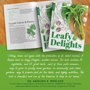 Leafy Delights was an offshoot of SIKHAY’s 2020 calendar entitled “Sarap! Delight in Healthy Philippine Greens”. The title suggests just that. It was very well received by the public as all its yearly calendars since 2014.