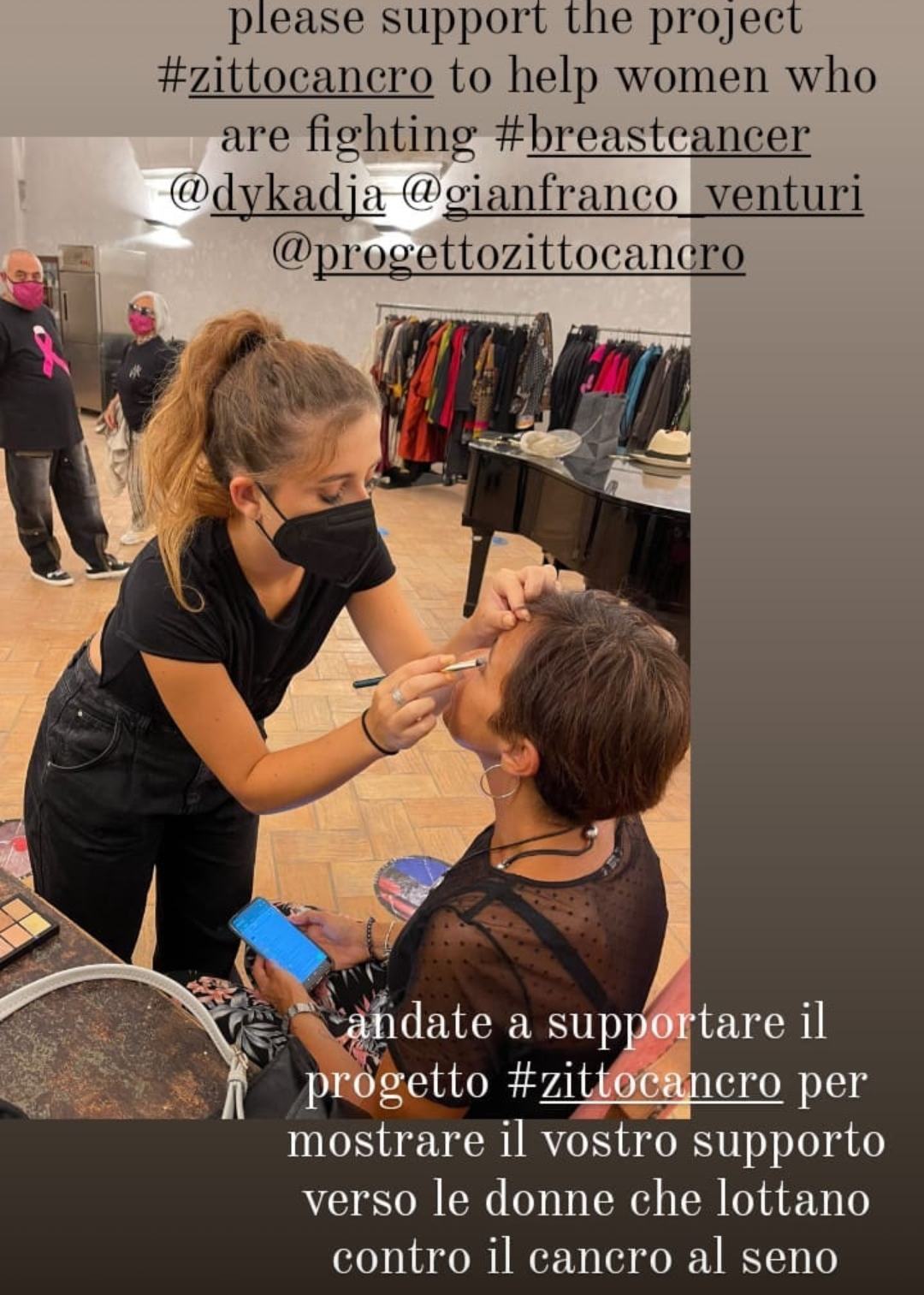 La sfilata è stata al servizio di un’importante campagna di sensibilizzazione e di raccolta fondi per aiutare tante donne che stanno affrontando le cure oncologiche. Tutto è nato in modo casuale e tutto è andato alla perfezione. Il trucco ha reso ancor più belle le signore che hanno sfilato in passerella nella bella piazza medievale della cittadina. Bravissime e bellissime! E’ stata una serata incredibile in cui ho avuto anch’io l’occasione di conoscere un gruppo di donne piene di forza ed energia. Con la voglia di dire: “Zitto cancro,vinceremo noi, la nostra voce è più forte della tua!”